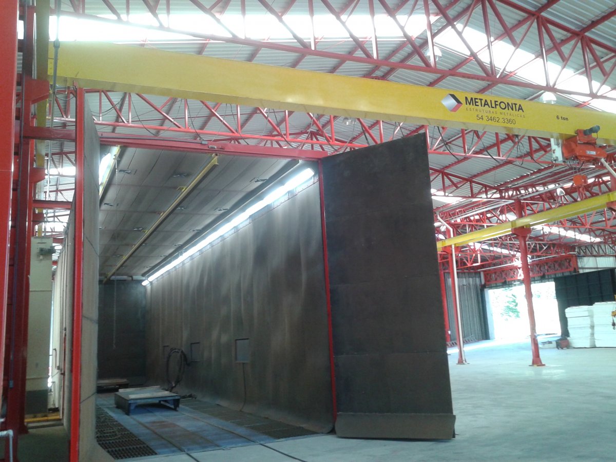 A empresa possui equipamento de jato a granalha de aço, para a limpeza das estruturas metálicas possibilitando dessa forma maior aderência e melhor qualidade na pintura das mesmas.